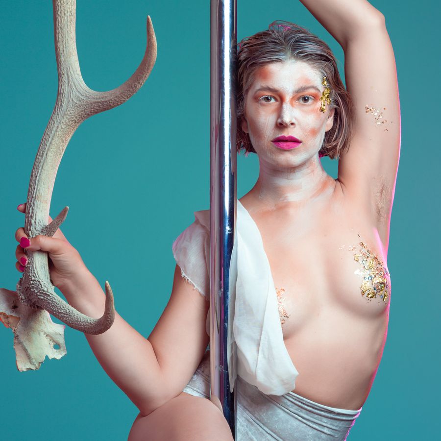 Sofie Kramer is theatermaker, performer, schrijver en paaldanseres. Na haar afstuderen in 2019 aan de Regieopleiding van Toneelacademie Maastricht, richtte ze zich op het verkennen van schaamte en taboes door middel van een reeks solo-optredens. Ze beweegt zich met gemak door het schemergebied tussen goed en kwaad, jager en prooi, feit en fictie. Met haar werk daagt ze het publiek uit om het grijze gebied binnenin zichzelf te onderzoeken en het ongemak en de innerlijke verwarring die hierbij komen kijken, te omarmen. Deze maand staat ze in de grote zaal van Bellevue, met A Pole Tragedy.