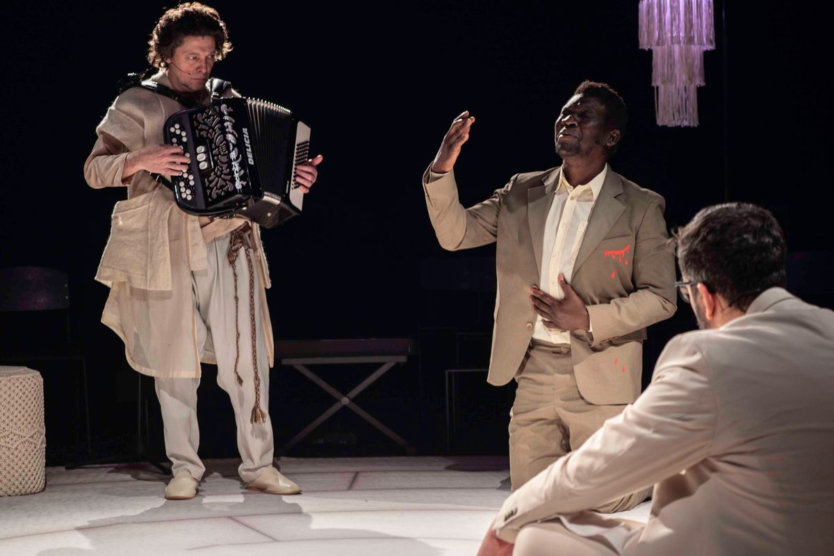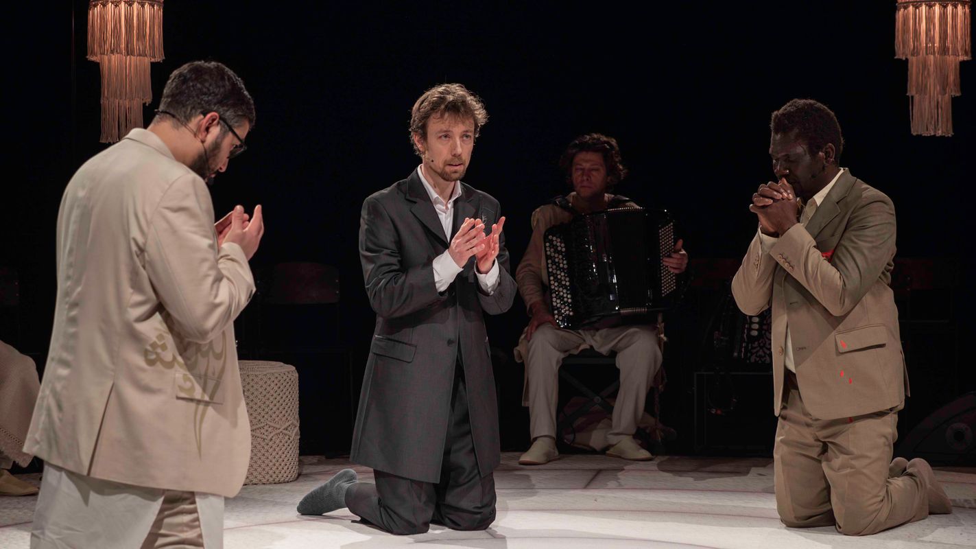 Het toneelstuk (...) trekt parallellen tussen het leven van vluchtelingen en dat van Jezus, Mozes en Mohammed.