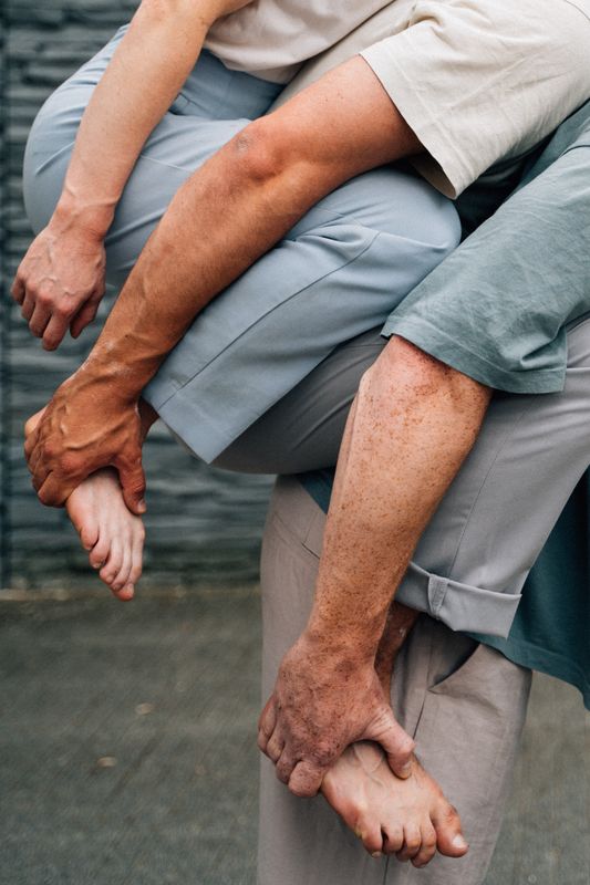 Three athletic bodies, three movements and the dazzling possibilities. The partner acrobatic trio Knot on Hands works from the irrepressible pulse of movement, creating and recreating their movement material. And then there are those gems, a principle of a movement like the chocolate bonbon that does not reveal its filling, the carefully wrapped gift whose shape cannot be guessed, that plot-driven story that has no end. The poetic and physical performance CONCRETE unravels a movement time and again that is like a perpetual motion machine.