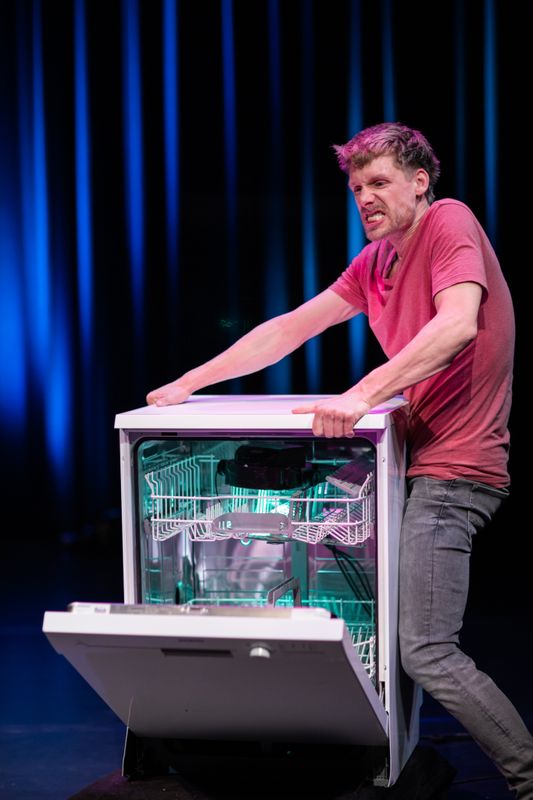 "Thijs van de Meeberg plakt een brede grijns op je gezicht die er in anderhalf uur niet meer af hoeft" Theaterkrant
