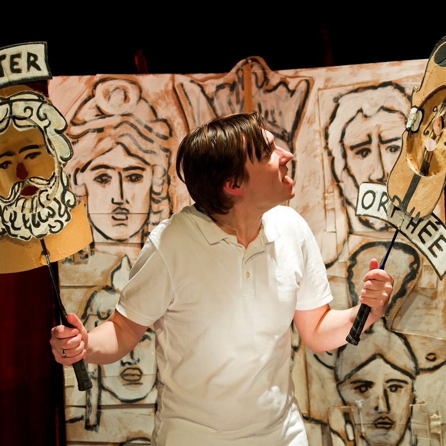 Op onnavolgbare wijze zet hij zijn decor in en laat hij theater letterlijk voor de ogen van het publiek ontstaan