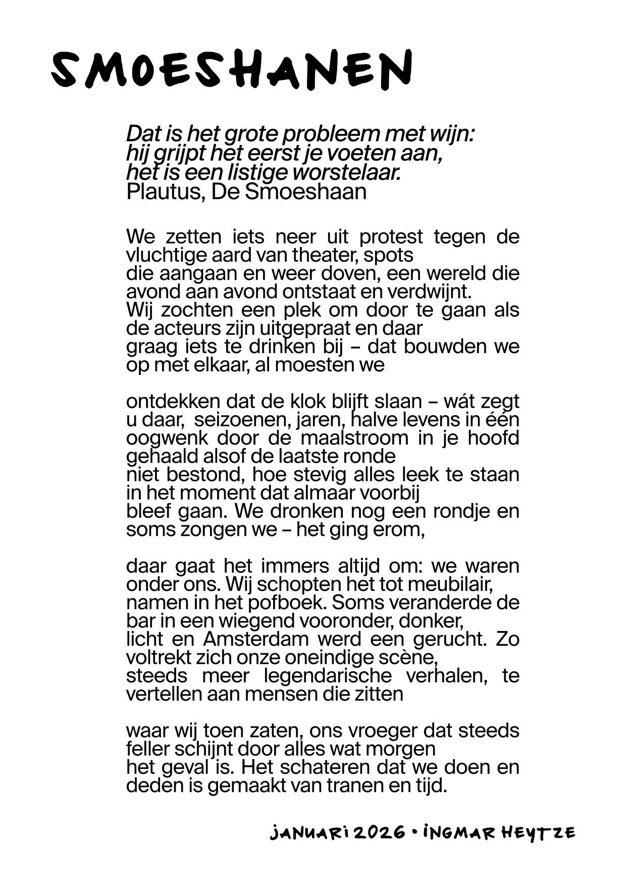 Vrijdag 23 januari blies de haan die 50 kaarsjes uit met een heerlijk verjaardagsfeest. De Smoeshaan was gevuld met stamgasten en barmedewerkers uit 50 jaar die het leukste theatercafé van de stad een gezicht gaven. Er werd geproost op die 50 jaar, op de koks die al vanaf het begin de lekkerste gerechten uit die keuken toveren en op herinneringen die werden gedeeld door Sander Uitdehaag. Stephanie Louwrier droeg het Smoeshaan gedicht voor, geschreven door Ingmar Heytze. En er werd gedanst! Tot in de kleine uurtjes, zoals dat hoort in De Smoes. Nagenieten doen we met de foto’s en het gedicht.