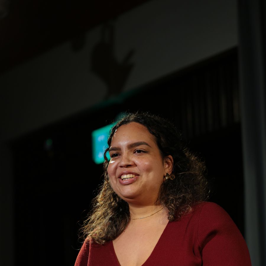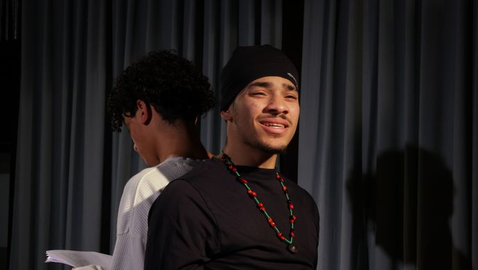 Op de eindpresentatie van Write me a story klonken de stemmen van de studenten van Pact+ Theater door de Speakeasy - teksten die ze zelf hadden geschreven, en die ze vol overtuiging aan elkaar en het publiek voordroegen.